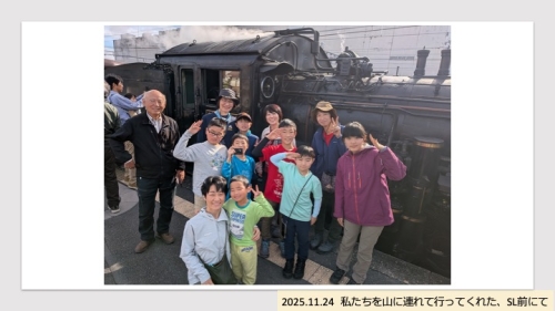2025.12.31 今回のキッズ登山は、いつもとまったく違うことが一つ・・・ キッズのみイベントは、基本的に集合場所から解散場所まで、保護者と離れた子どもたちが山の冒険をする機会です。 今回は特別に「登山前」にもイベントを設定しました。 それは・・・SLの団体予約。登山場所の長瀞まで、子どもたち(と希望した保護者)がみんなでSL乗車を楽しむ時間があります。 実は私、今回初めてSLに乗りました。電車好きの子どもたち集まれ!イベントのつもりで企画したのですが、一緒に乗った保護者の皆さんも楽しまれていました!